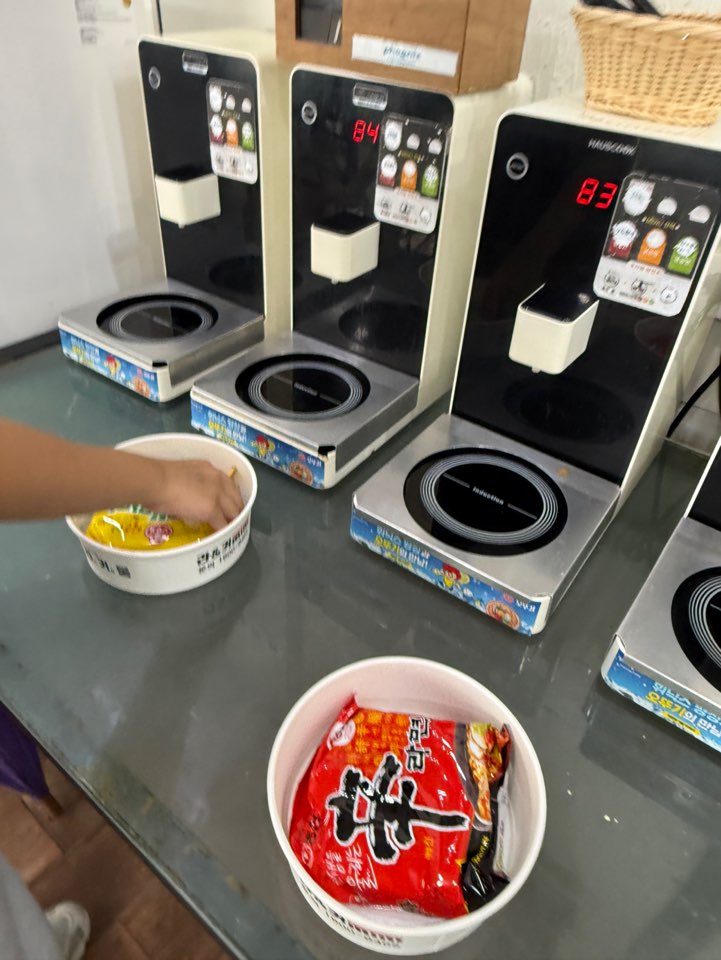 마침 출출하던 차에, 커피 마실 돈으로 라면을 선택했습니다. 라면이 한 봉지에 6천원입니다.