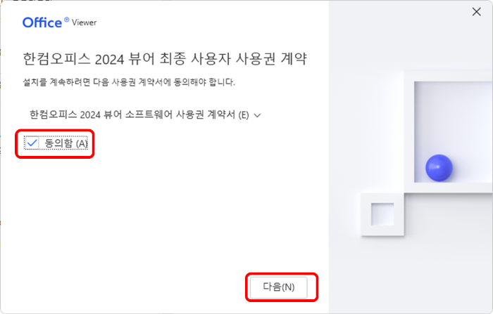 (9) 이제 한컴오피스 2024 뷰어가 설치되기 시작합니다.