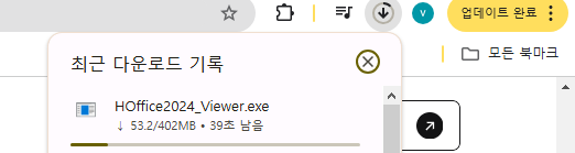(4) 다운로드가 완료되면 저기 보이는 HOffice2024_Viwer.exe 를 더블 클릭합니다.
