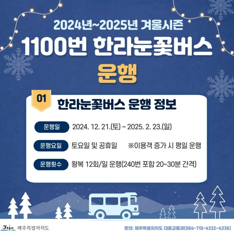 1100번 같은 경우는 겨울철 눈꽃버스도 운행하니 한번 검색해서 알아보시는 것도 도움이 될 수 있습니다.
