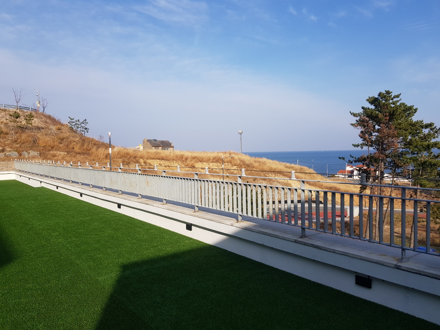 옥상으로 올라가면 푸른 동해바다가 정말 시원하게 펼쳐지는데요 이런 곳에서 일출을 본다면 정말 멋질 것 같죠?