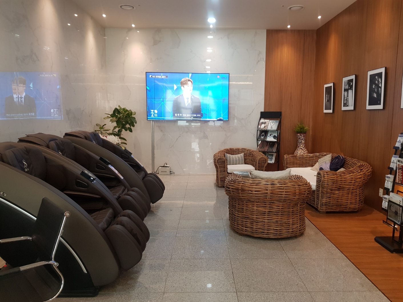 로비도 예쁘게 꾸며 놓았고 비즈니스 공간은 급할때 사용할 수 있는 PC와 안마의자 (유료 2000원) 이 구비되어 있어요.