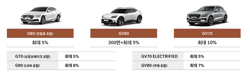 ✅ 제네시스 브랜드 차종: 최대 7% 할인