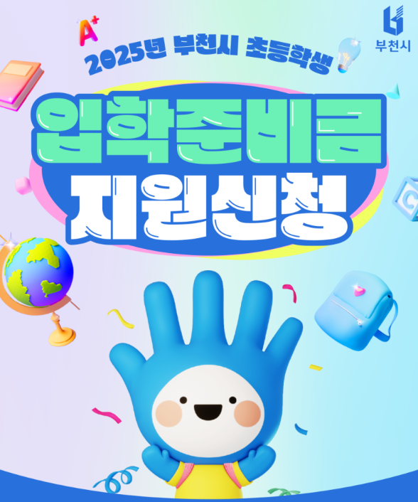 2025년 초등학교에 입학하는 아이들을 위해 부천시에서 입학준비금 10만 원을 지원합니다.