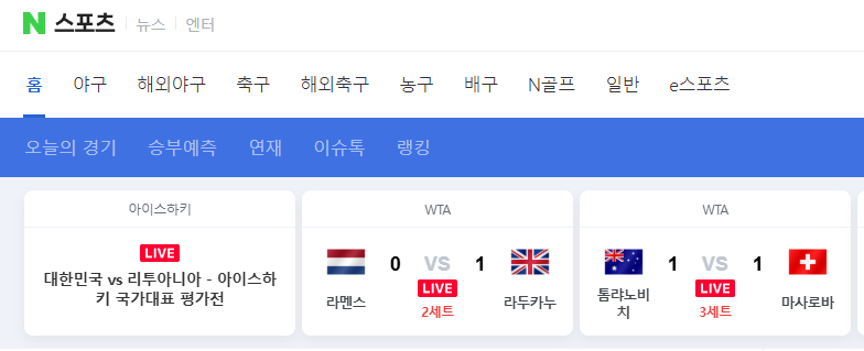 네이버 스포츠에서는 종종 스포티비와 제휴된 경기들을 무료로 실시간 중계해주고 있습니다.