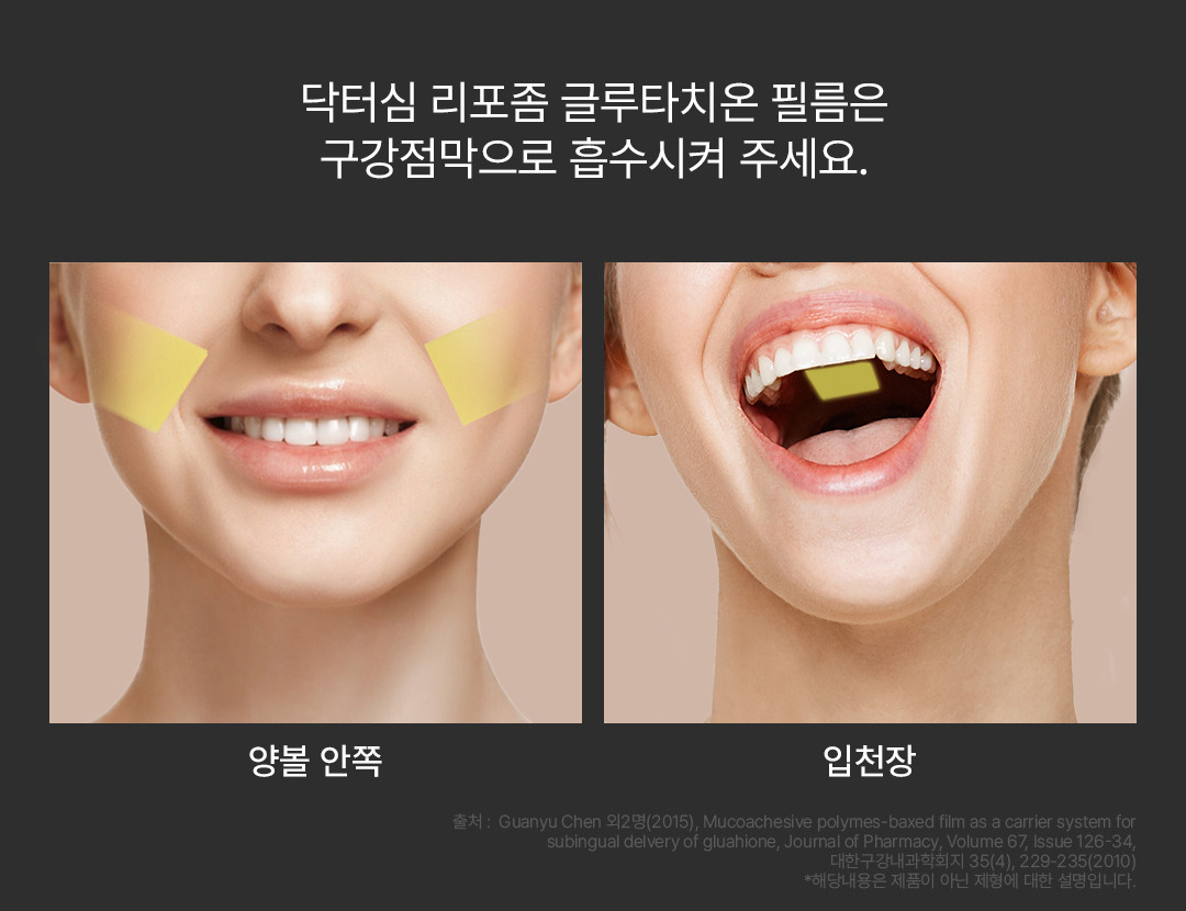 구강 점막은 혈관이 풍부하게 분포되어 있어 필름을 입천장이나 볼 안쪽에 붙이면 위장관을 거치지 않고 혈류로 직접 흡수되는 장점이 있습니다. 또한 리포좀 공법은 글루타치온을 인지질 막으로 감싸 소화 효소로부터 보호하고 세포막과의 친화력을 높여 체내 이용률을 획기적으로 끌어올린 4세대 기술로 평가받고 있습니다.