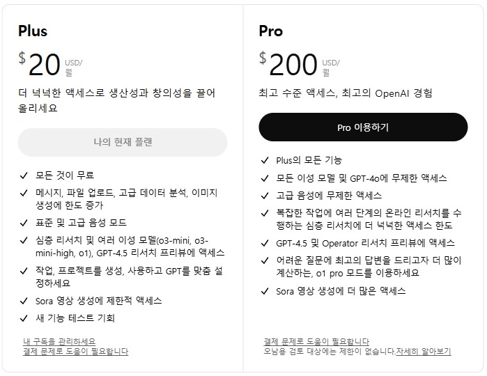ChatGPT 요금제는 두 가지 – Plus와 Pro