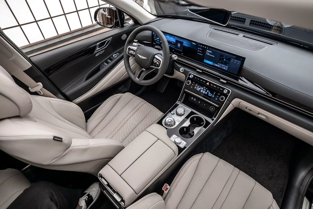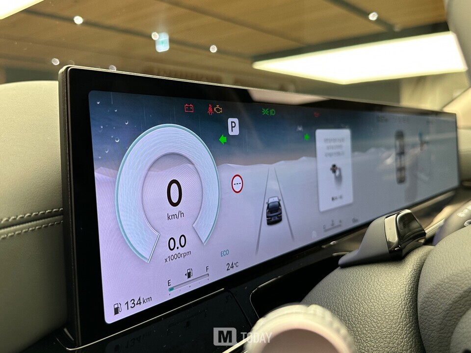 실내는 통합형 27인치 와이드 디스플레이가 적용되어 세련되면서도 첨단 기술이 적용되었다는 느낌을 받을수 있는 이미지를 잘 구현해 낸 것 같습니다.