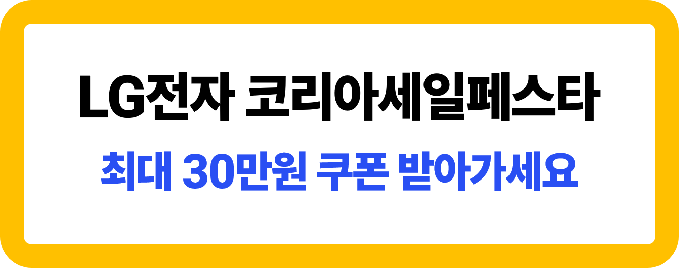 LG전자가 대한민국 최대 쇼핑 축제인 ‘2024 코리아 세일 페스타(Korea Sale FESTA)’에 참가하여 다양한 가전제품에 대한 특별 할인과 경품 혜택을 제공합니다. 행사 기간내에 가전 구매시 사용할 수 있는 전용 쿠폰을 발행하고 있기 때문에 글에서 소개해 드리는 곳에서  30만원까지 할인 받는 쿠폰을 받으실 수 있습니다.